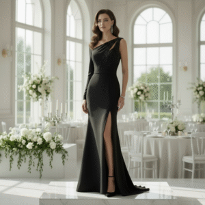 A wedding is a happy day. People wear nice clothes. Guests also want to look good. A black dress is a smart choice. It is simple. It is neat. It is stylish. Anyone can wear black. It looks good on all people.